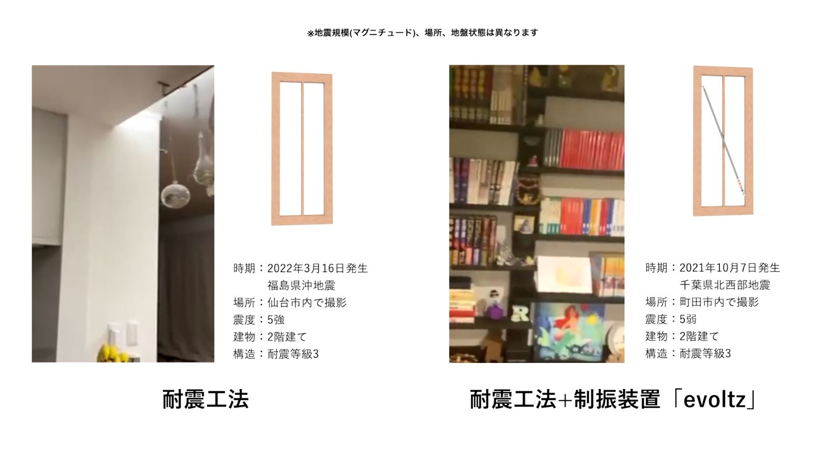 カタログデータ 動画データ 施工マニュアル 振動体感イベント関連資料 Talkbook&小冊子 各種書式 【ワイド版】地震発生時のお施主様ご自宅 evoltz比較動画 再生 ダウンロード 地震発生時のお施主様ご自宅 evoltz比較動画 再生 ダウンロード 大阪北部地震 evoltzお施主様インタビュー2018 再生 ダウンロード evoltz振動体験イベント2016 再生 ダウンロード 制振装置evoltz比較実験_2018年 再生 ダウンロード 北海道胆振東部地震 evoltzお施主様インタビュー2018 再生 ダウンロード evoltz development story 再生 ダウンロード evoltz製品説明動画 20190301 再生 ダウンロード 【制振装置evoltz】共振模型の動かし方・しゃべり方 再生 ダウンロード 制振ダンパーevoltz 100万回の試験Ver 再生 ダウンロード 制振ダンパーevoltz 温度試験Ver 再生 ダウンロード